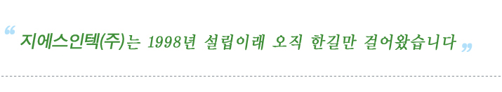지에스인텍(주)는 빠르게 변화하는 21C를 대비하여 내일을 미리 예측하고 준비하면서 끊임없는 도전으로새로운Technology를 추구하고 변함없는 마음으로 고객의 만족의 부응하는 우수한 제품만을 고집하여 왔습니다.